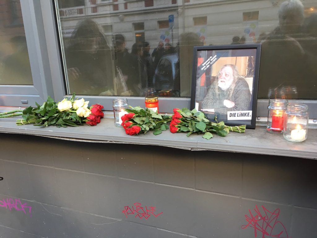 Sorgte die Straße bei mir im Falle Altersheim noch für eine heitere Grundstimmung, änderte sich das am Folgetag drastisch, bei einer Mahnwache für den auf der Straße gestorbenen Obdachlosen Jürgen „Bauer“ Niemann, der nach einer skandalösen rechtswidrigen Zwangsräumung auf der Straße gelandet war, einen Schlaganfall erlitt und am 12. Februar vermutlich erfroren ist, Details hier.