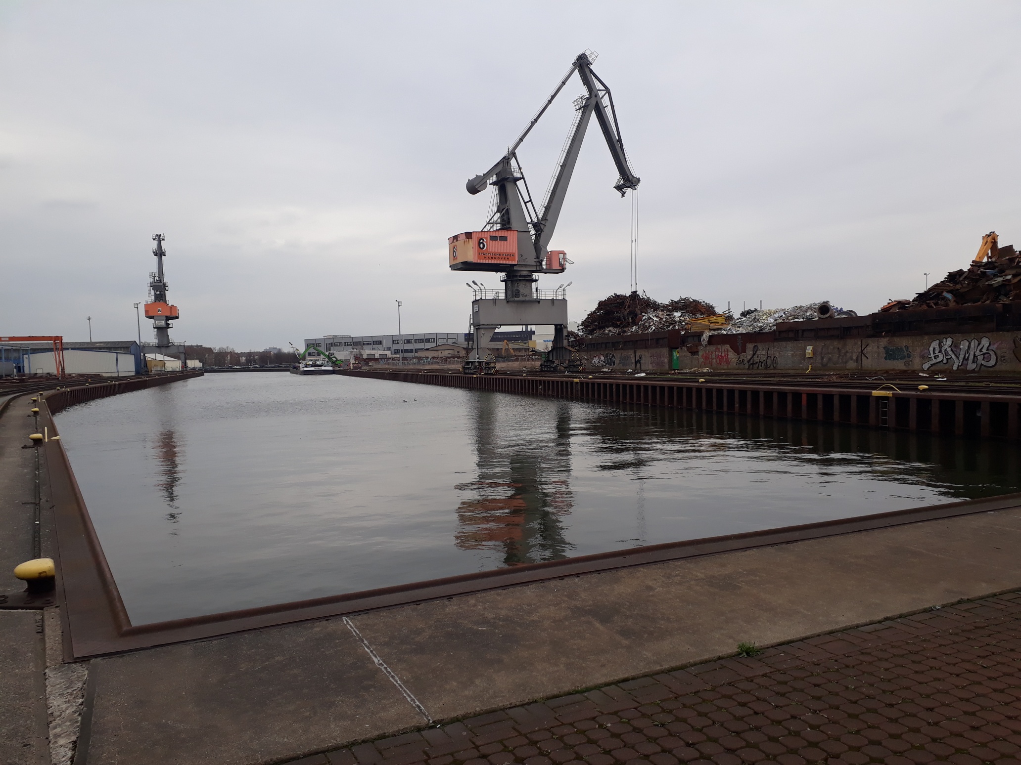Bei mir umme. Natürlich ist der dazugehörige ca. 4 qm große Hafen eher ein Witz, so wie dieses Schild, dessen Humor irgendwie ins Transzendente lappt. Er schwebt über allen Wassern, ist aber nicht direkt greifbar. Kleidete ich ihn in Worte, raubte ich ihm die Wirkung. Insofern ist auch Wittgensteins Diktum „Die Grenzen meiner Sprache sind die Grenzen meiner Welt“ von der Erkenntnis her: begrenzt. Es gibt noch eine Welt jenseits der Begriffe. Aber ich will hier kein Proseminar zu Zech-Buddhismus für Anfänger machen, hier geht’s um meinen Hafen, zwei autonome Steinwürfe von meiner Homebase entfernt. Den querte ich unlängst auf der Suche nach leeren Grundstücken. Hintergrund: Das Land Niedersachsen ist zur Zeit noch störrisch, was die Gründung einer von der Landesarmutskonferenz, dem DGB und Anderen geforderten Landeswohnungsbaugesellschaft angeht: Gemeinnützig, nicht profitorientiert, bezahlbarer Wohnraum für alle, ab 5 Euro pro qm, Größenordnung 40.000 Wohnungen über die Jahre. Die Argumente der Gegenseite: Reine Symbolpolitik, dauert zu lange, kostet zu viel, braucht Personal etc. pp. Das ist natürlich kompletter Unsinn, die Bayern haben es ruckzuck vorgemacht, und eine aus dem Boden gestampft. Waren ja auch Wahlen.