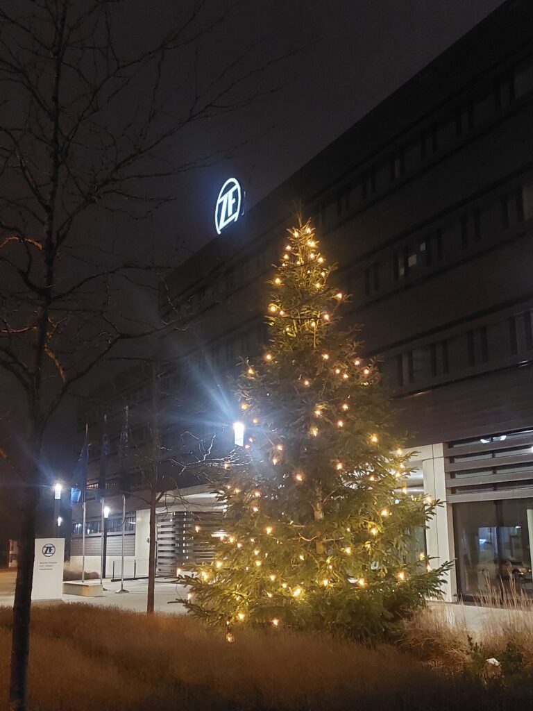 Weihnachtsbaum vor der Niederlassung der Firma ZF in Hannover-Linden. ZF, Maschinenbau, weltweiter Technologiekonzern in Sachen Mobilität, hat an zwei Standorten in Hannover ungefähr 2.200 Mitarbeiter*innen. Beide Standorte sind von Schließung bedroht. Mein ehemaliger hannöverscher Arbeitgeber Krauss-Maffei, vormals Berstorff GmbH, auch Maschinenbau, hat ca. 750 Mitarbeiter*innen. Dort ist für 2026 Kurzarbeit geplant. Kurzarbeit kann, muss nicht, das drohende Ende einer Firma bedeuten. Ca. 3.000 gut hoch qualifizierte und ordentlich bezahlte Facharbeiterinnen und Ingenieure, die im schlimmsten Fall ihren Job verlieren. Nur in dieser Region. Und da wäre von der Zulieferindustrie noch gar nicht die Rede.