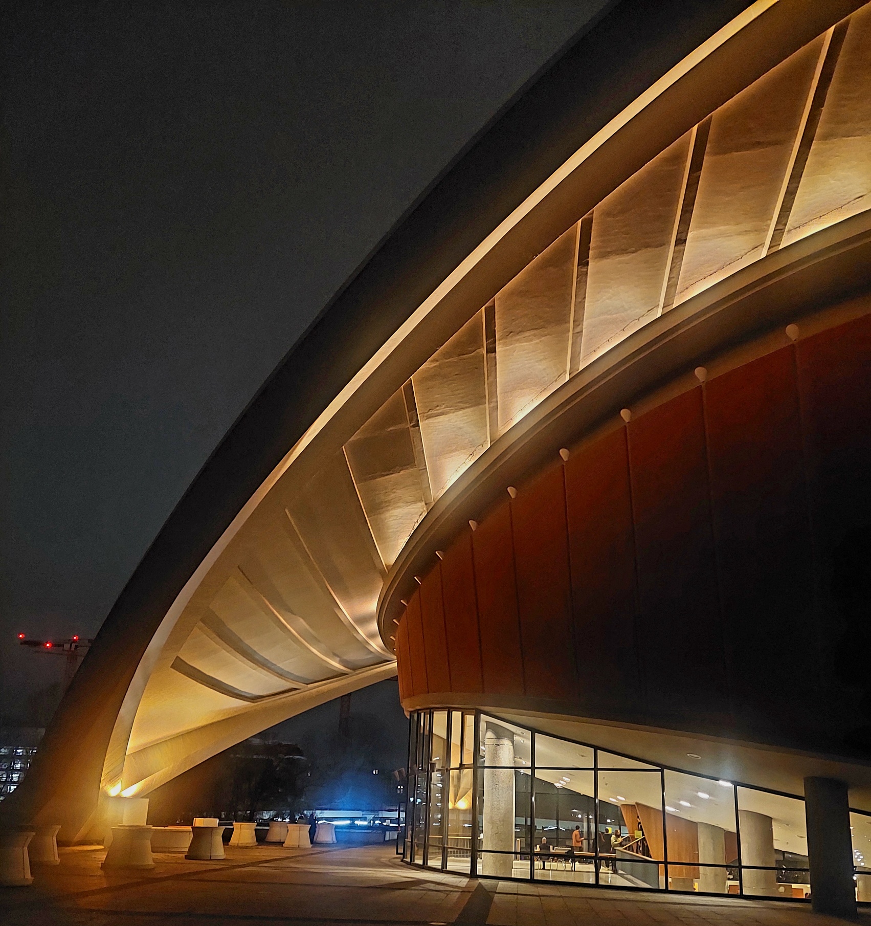 Haus der Kulturen der Welt, Berlin, bei Nacht.