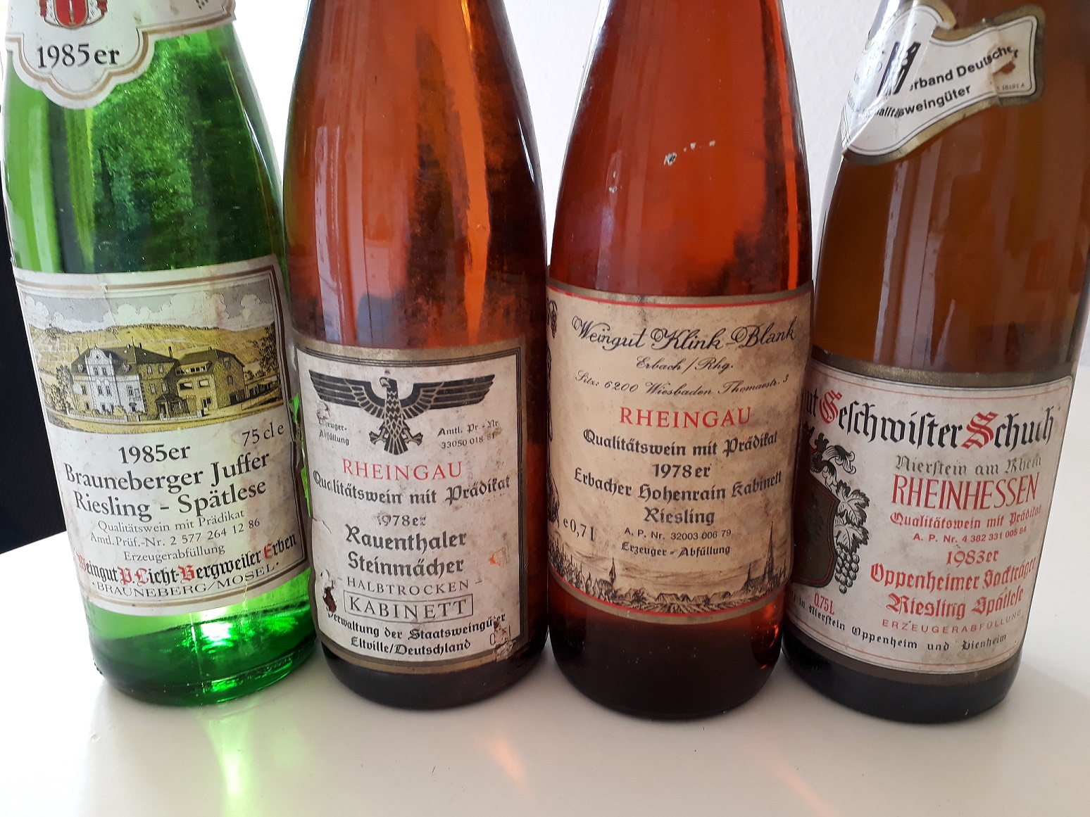 Diese Weine erwarb ich unlängst aus einem Nachlass, dessen Erlös einem sozialen Zweck zugutekam, den ich schon wieder vergessen hab. Connaisseuren sagen die Namen etwas, die Lagen zählen zu den Großen in Deutschland. Allerdings ist nach 40 Jahren der Lack etwas ab bei Weißweinen, die unterhalb der Kategorie Auslese firmieren und damals war der deutsche Weinanbau in einer veritablen Qualitätskrise. Es war eher eine skurrile Trinkerfahrung, eines der Abenteuer, die Corona noch zulässt in Zeiten von Cocooning, und saufen für einen guten Zweck ist ja eh jenseits aller Kritik. Das Foto fiel mir wieder ein und in die Hände, als gestern haufenweise positive Nachrichten von der Impfstofffront über den Ticker kamen. Was das angeht, bin ich Info-Junkie, Impfstoffsüchtig. Eigentlich hatte ich mich damit abgefunden, dass das in absehbarer Zeit Nichts wird mit Impfen, wenn überhaupt mal. Aber nach gestern sieht der Impfhimmel wieder rosig aus. Und Impfhimmel meint jenen Horizont, der mir Flüge in den Süden wieder riskierenswert macht. Ergo griff ich aus meinem Weinbestand die Flasche, die da für besondere Anlässe liegt, ein Fürst des Weißwein-Wesens, einer jener Tropfen, die man sonst nur vom Hörenraunen kennt, und beklebte ihn mit einem Schild: Zur Impfung trinken!
