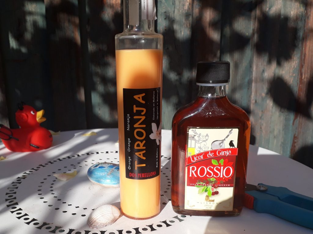 Orangenlikör mit Milch, Mallorca, und Sauerkirschlikör mit Früchten, Lissabon. Ein unausrottbares Ritual nicht nur bei mir ist es, für die Zurückgebliebenen Mitbringsel der jeweiligen Urlaubsorte in den Trolley zu packen. Ob man die damit neidisch machen will oder umbringen, ist mitunter nicht ganz klar.