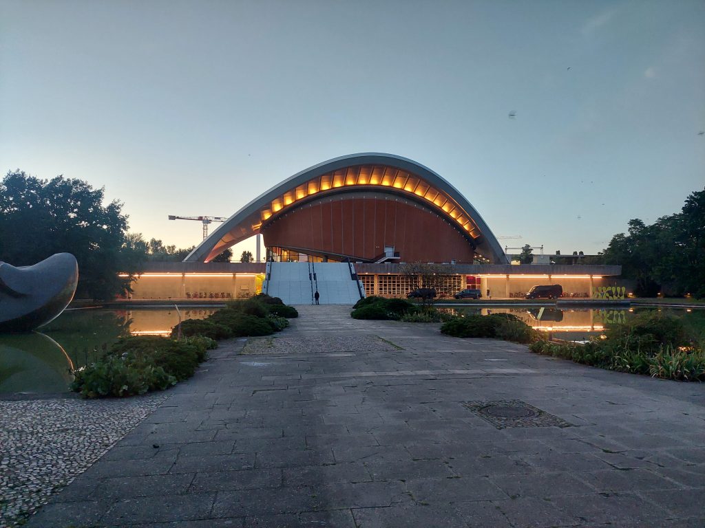 Haus der Kulturen der Welt, Berlin. Mein Lieblingsort, magische Terrassen-Konzerte in lauen Sommernächten, mit Blick auf die Spree und das Kanzleramt, ein Kultur- und Kunstangebot, das seinesgleichen sucht, die ikonische Architektur, und mit dem Klappi bin ich in 20 Minuten da, durch Tiergarten und Park Gleisdreieck, den irrsinnigen Verkehr umfahrend. Wenn es einen postmodernen Locus amoenus gibt, dann ist er hier.